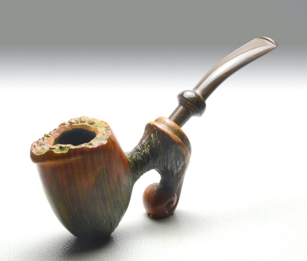 Dolomites: a novel take on a mountain-shaped pipe. Its rugged, craggy form is enhanced by a unique rustication and kaleidoscopic multicolored stain.