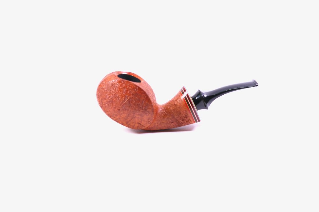 Each pipe is textured with a fine even sandblast. A gorgeous colorful band joins the stem and shank.