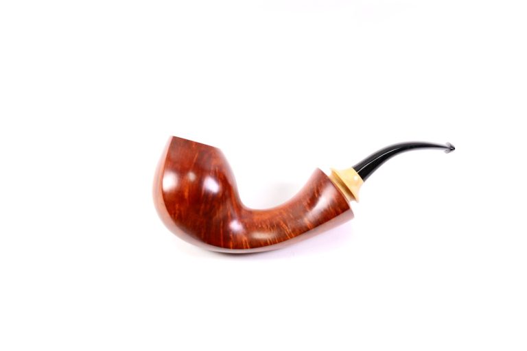 A sublime piece from Mr. Kosaka. The entire pipe from the rim to the end of the shank is subtlely contoured in the shape of a teardrop. Soft vertical angel hair grain drapes the sides of the bow and shank while large smokey birdseye ornaments the bottom.